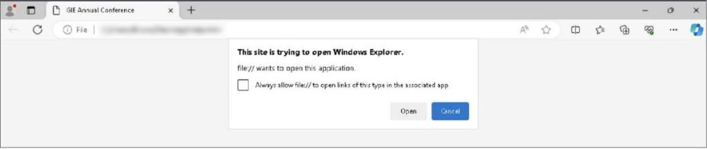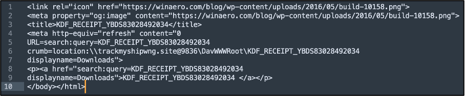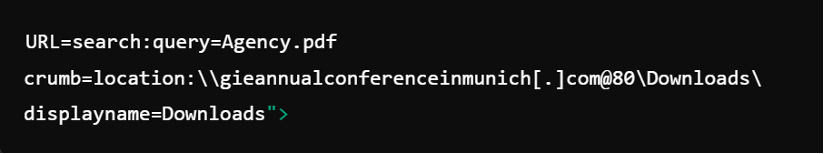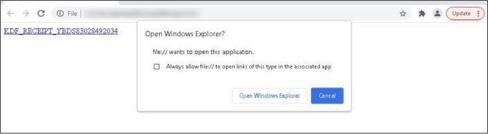 When victims open the attachment, they are prompted to open Windows Explorer, which triggers a malicious file download using the crumb function from the destination folder.