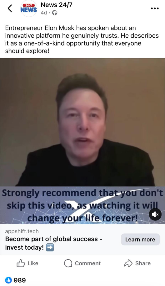 PLEASE NOTE THE VIDEO ABOVE IS A SCAM, A DEEPFAKE, AND NOT ELON MUSK