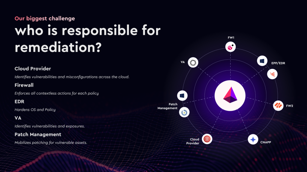 Cloud providers detect misconfigurations. Vulnerability scanners surface exposures. Firewalls, EDR, patch management platforms, and CNAPPs all play a role in applying protections, but none of them work together to coordinate and validate a single, safe remediation plan.